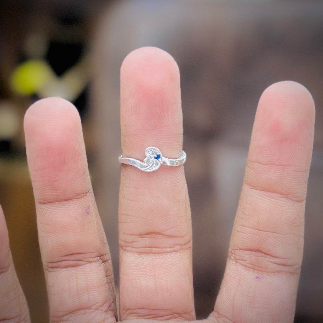 Silver Minimal Wave Design Lightweight Ring with Blue Accent | Women’s Silver Ring